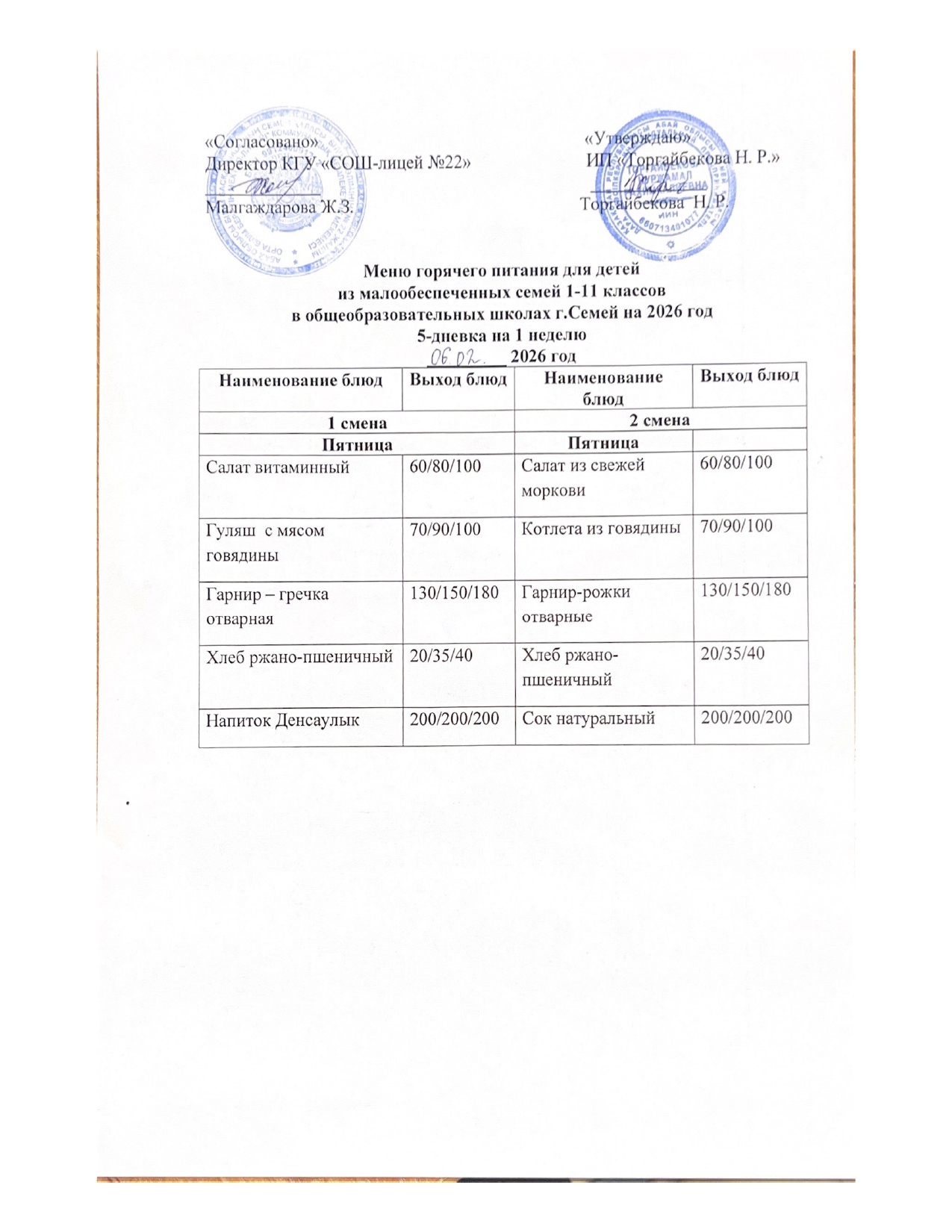 Күнделікті мәзір » Средняя общеобразовательная школа № 22