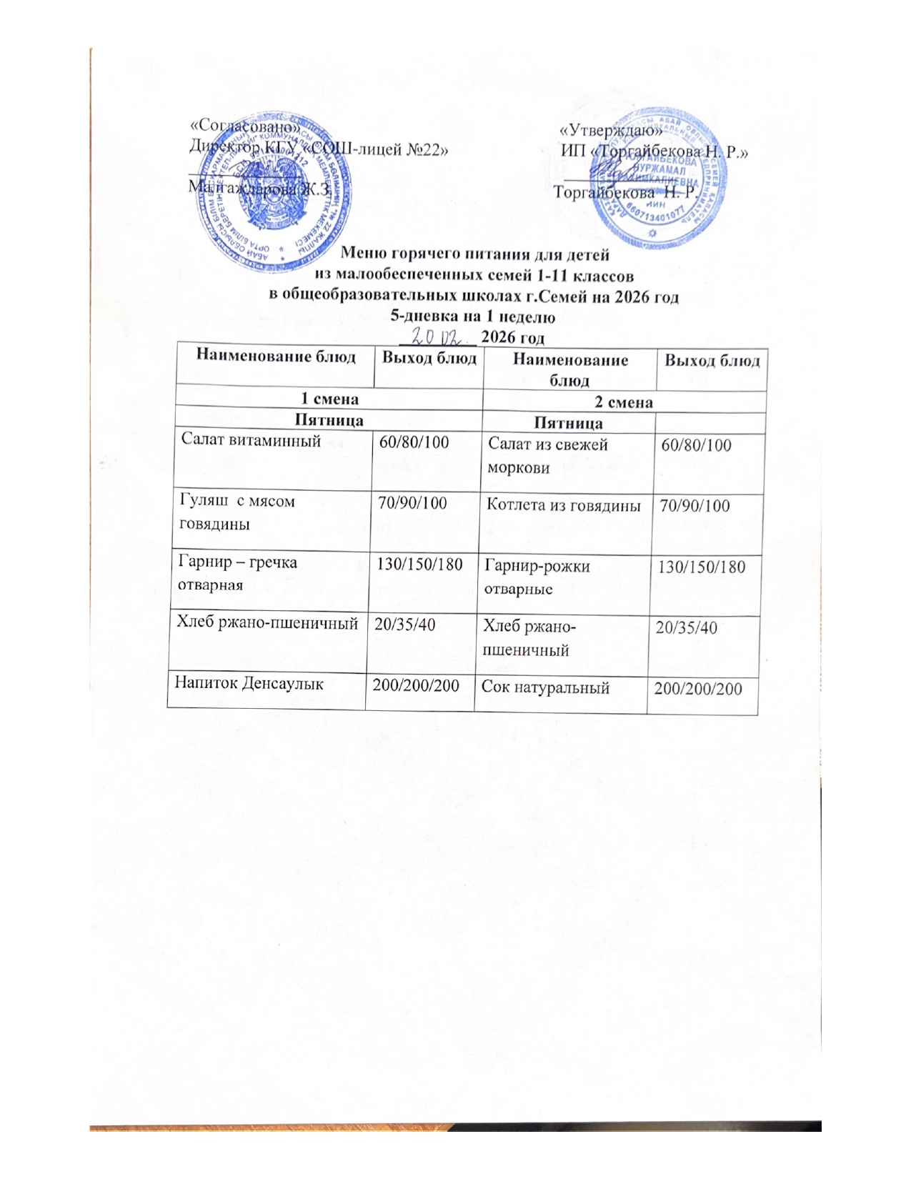 Күнделікті мәзір » Средняя общеобразовательная школа № 22