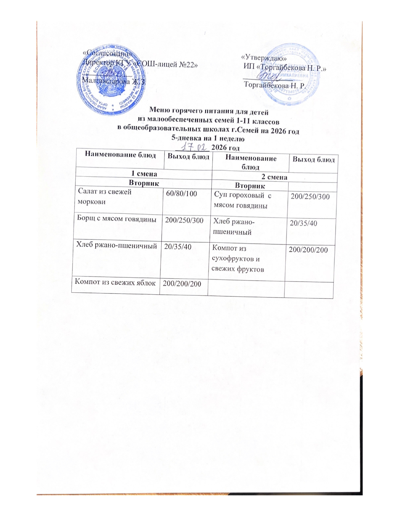 Күнделікті мәзір » Средняя общеобразовательная школа № 22