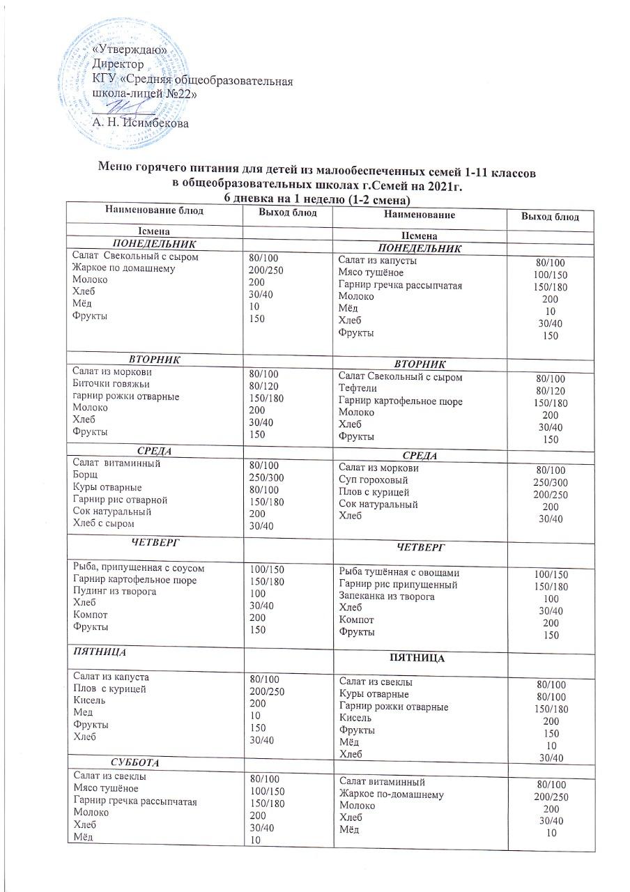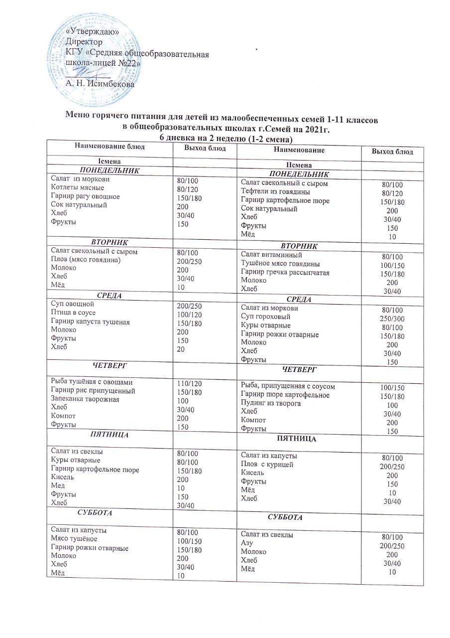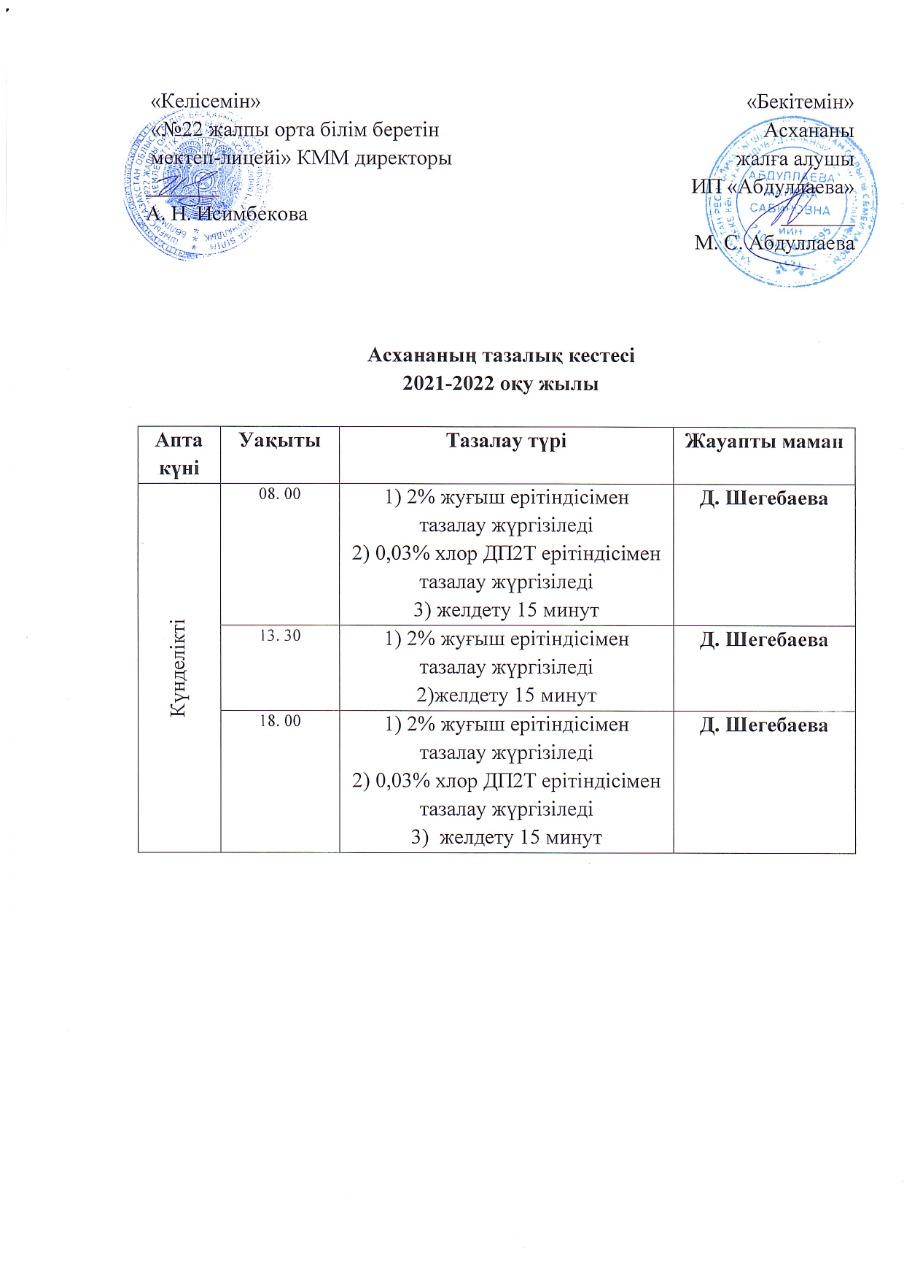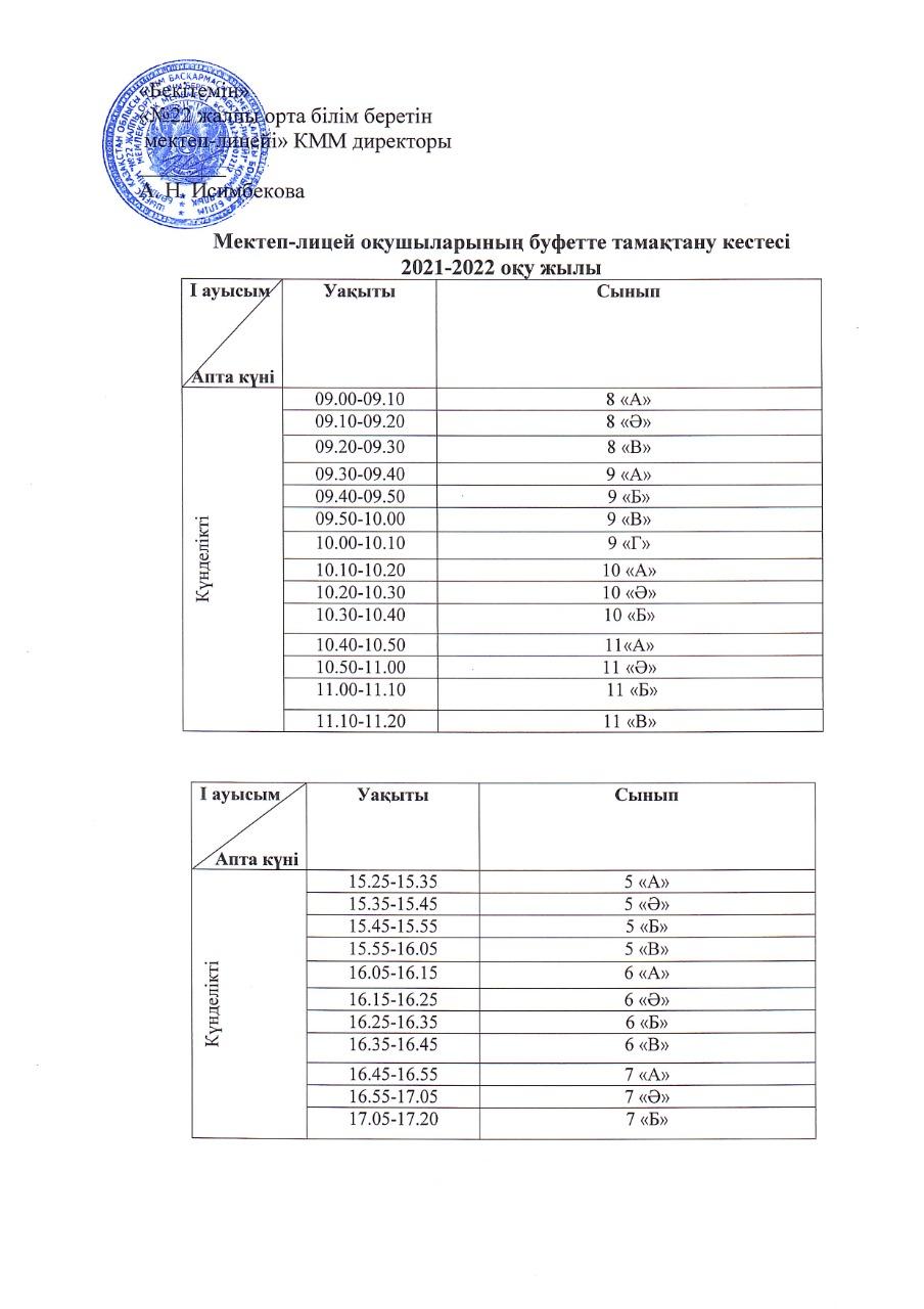 Мектеп-лицей оқушыларының асханада тамақтану кестесі » Средняя общеобразовательная школа № 22