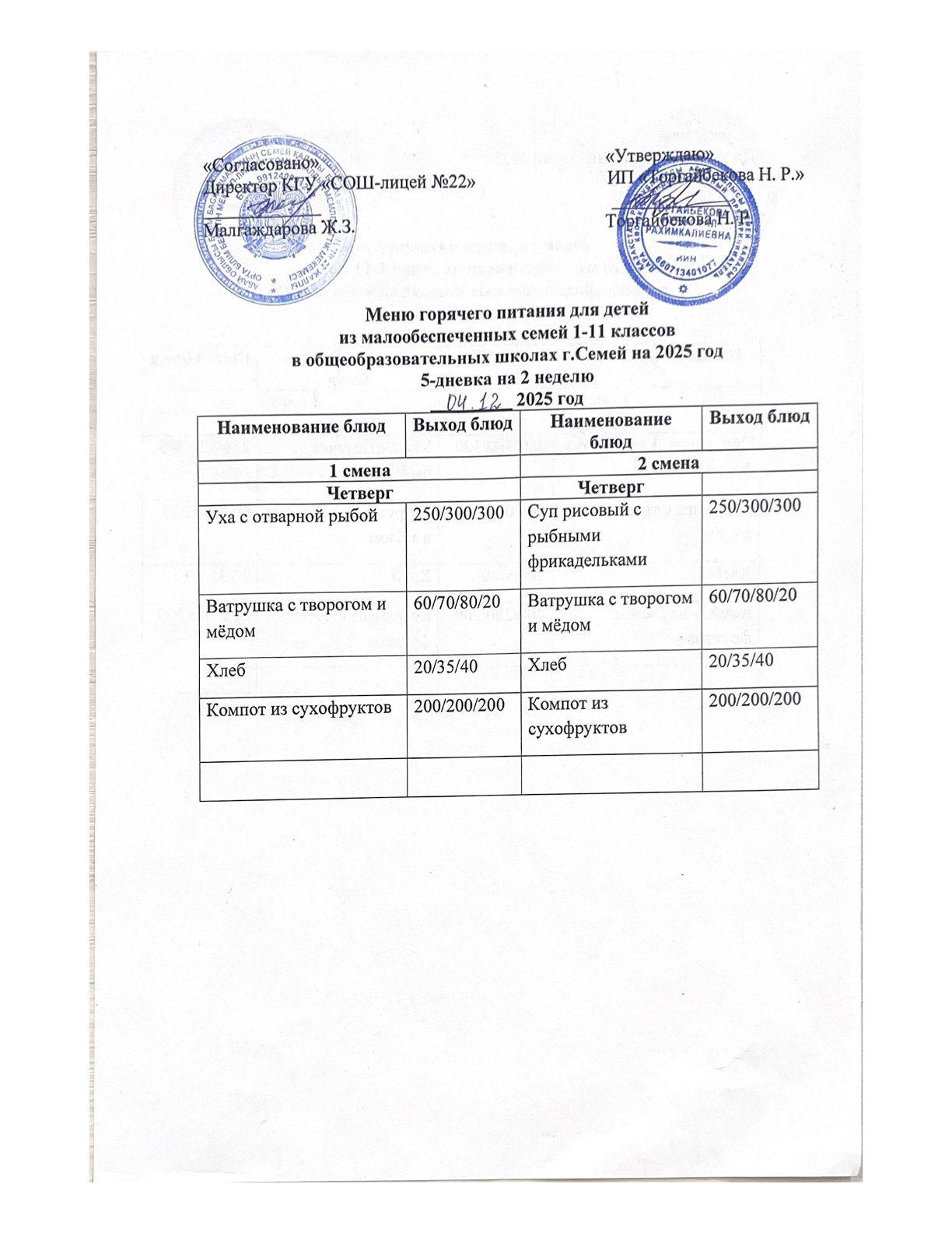 Күнделікті мәзір » Средняя общеобразовательная школа № 22