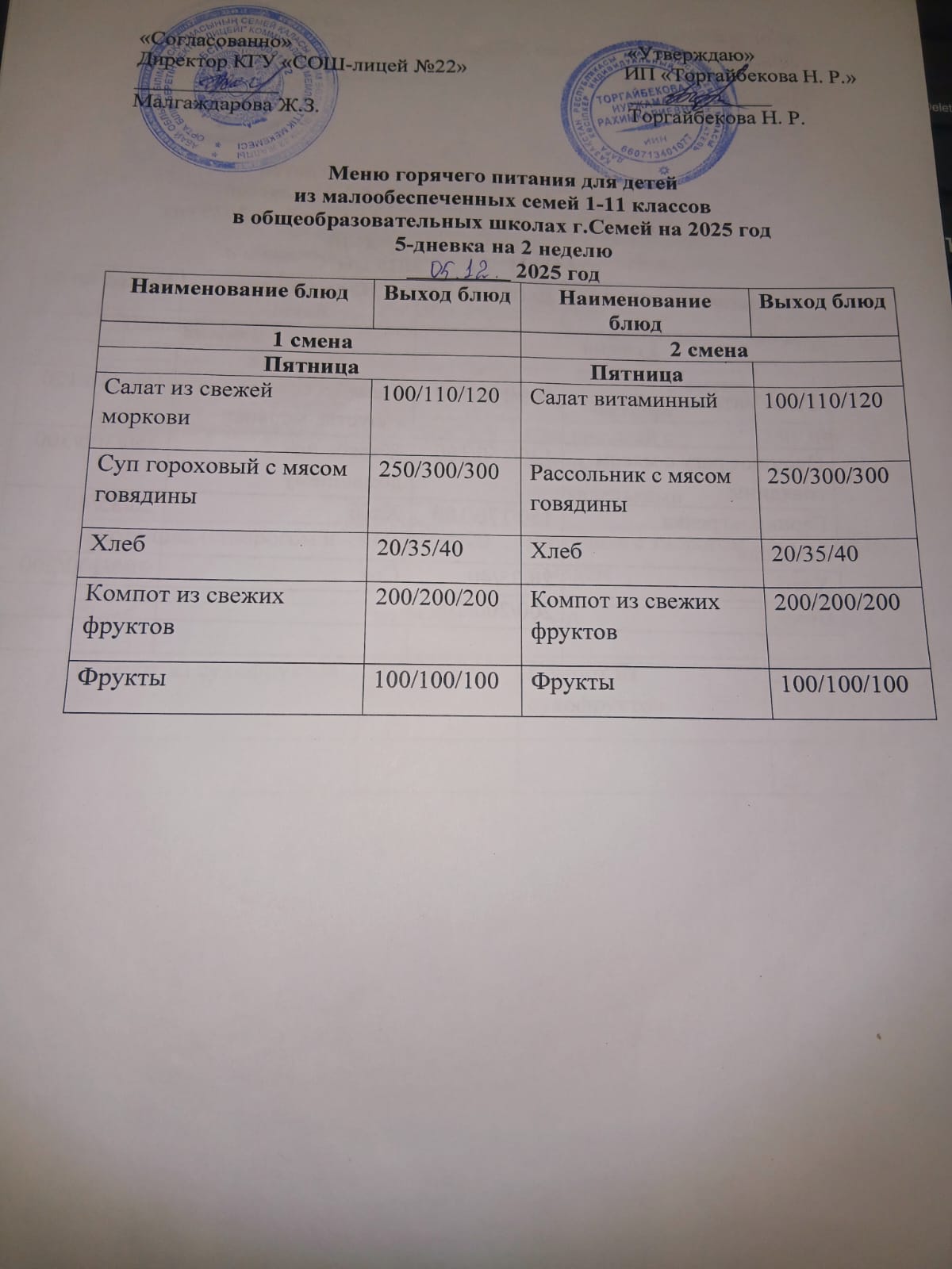 Күнделікті мәзір » Средняя общеобразовательная школа № 22