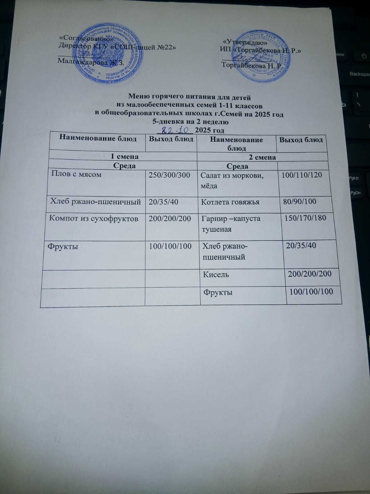 Күнделікті мәзір » Средняя общеобразовательная школа № 22