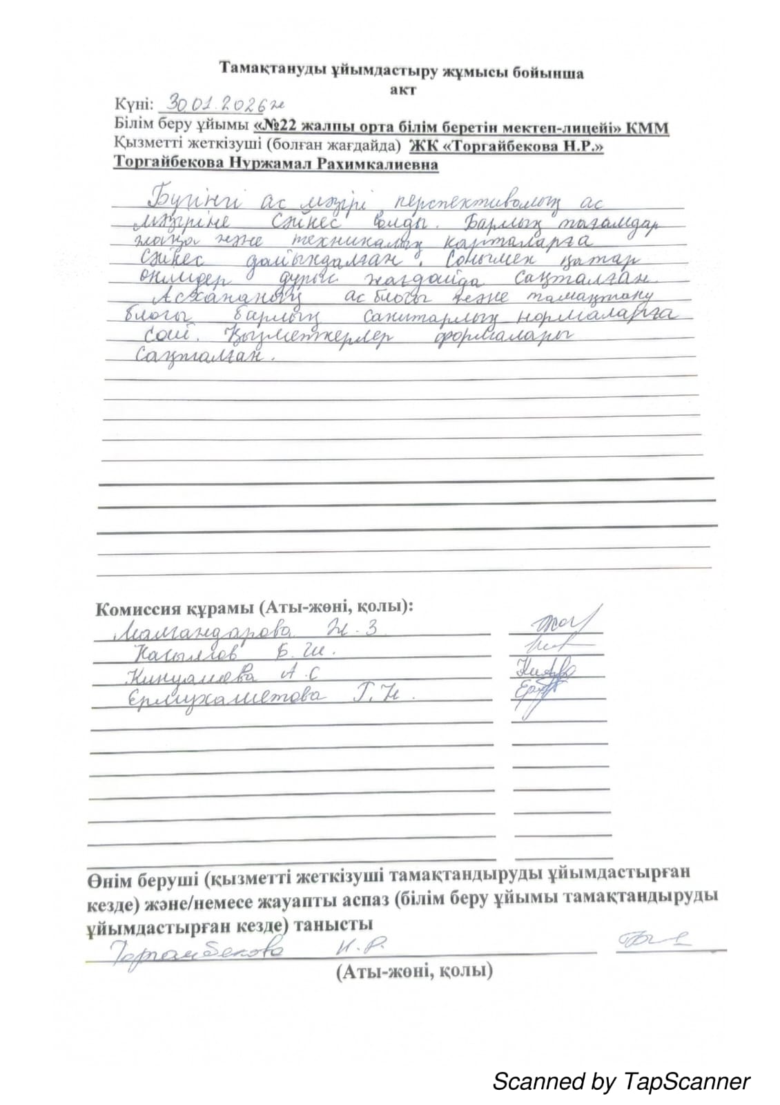 30.01.2026ж Асхана тексеру актісі » Средняя общеобразовательная школа № 22