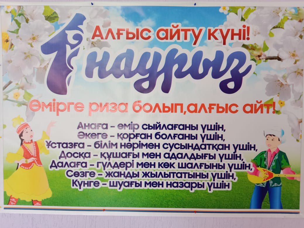 27 февраль 2023 0 1 2 3 4 5 1 наурыз алғыс айту күніне орай мектебіміздегі 4 сынып оқушылары өз алғыстарын білдіру мақсатында баннер шығарды.