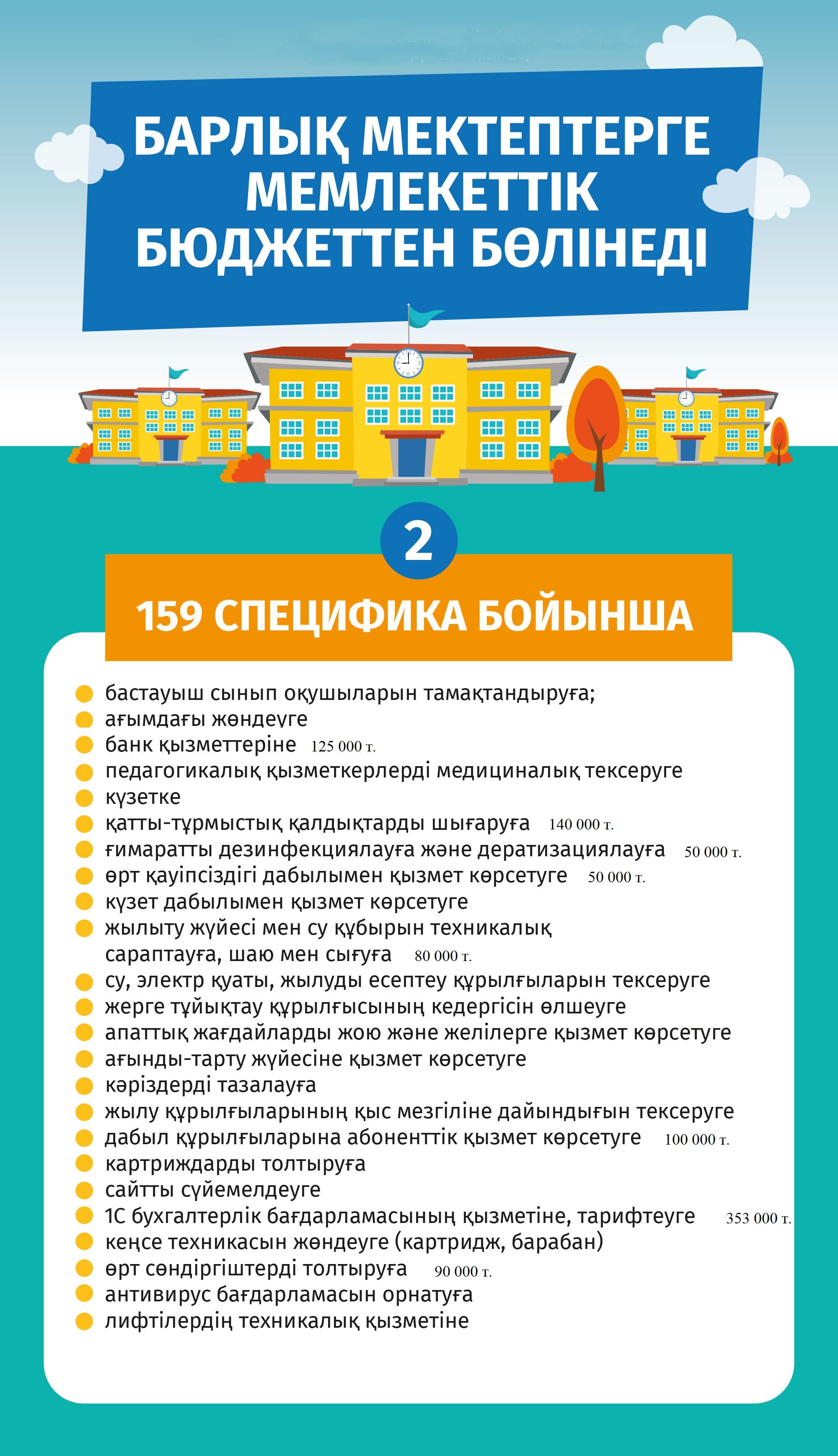 Барлық мектептерге мемлекеттік бюджеттен бөлінеді!