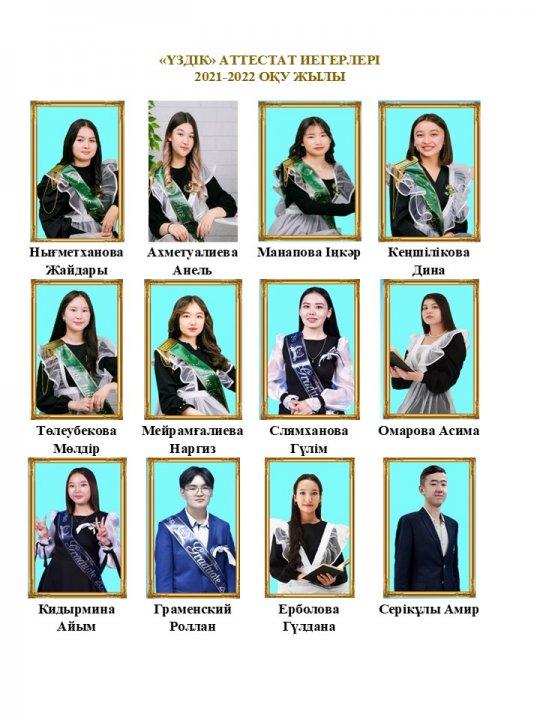 МЕКТЕП МАҚТАНЫШТАРЫ – «АЛТЫН БЕЛГІ», «ҮЗДІК АТТЕСТАТ» ИЕГЕРЛЕРІ » Средняя общеобразовательная школа № 22