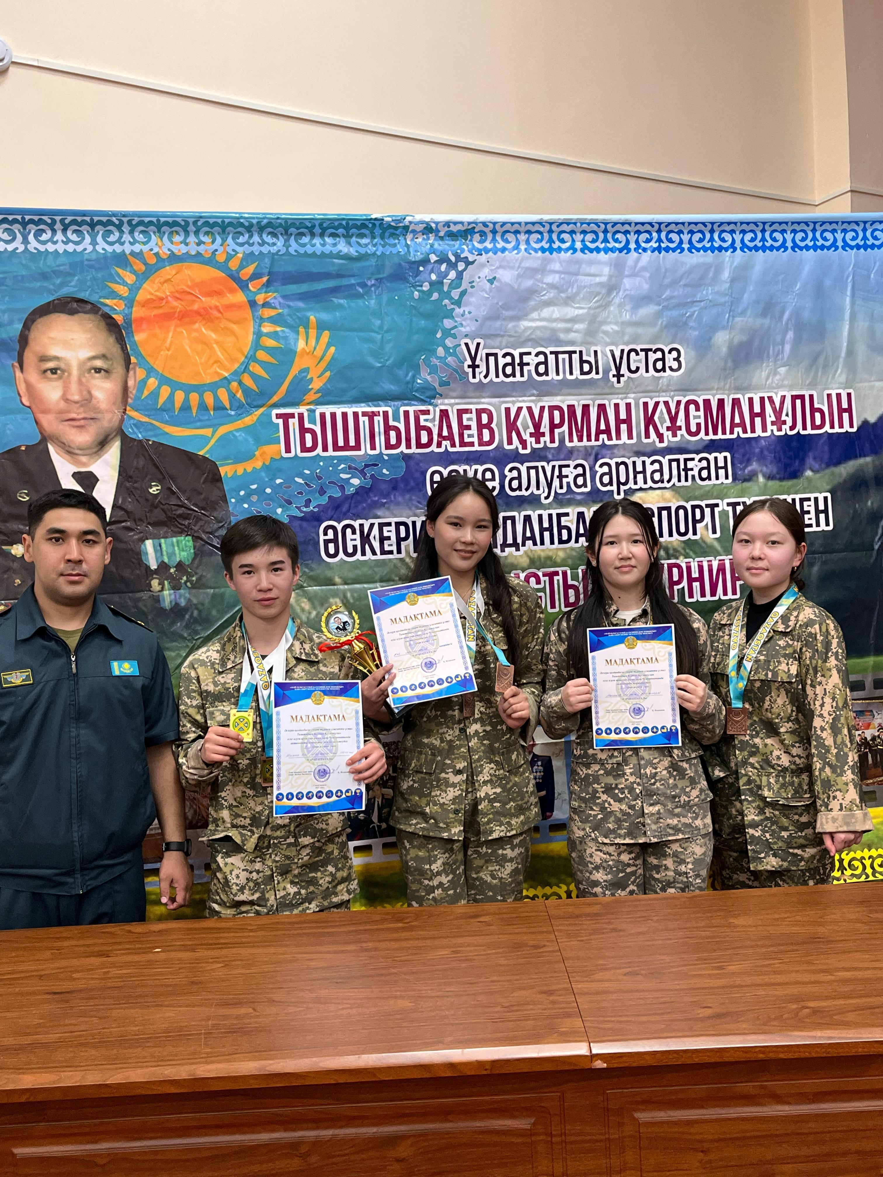 Әскери қолданбалы спорт түрінен ұлағатты ұстаз Тыштыбаев Құрман Құсманұлын еске алуға арналған қала мектептері және колледждер Чемпионатында Жалпы командалық есепте III- орын алғаны үшін 22 мектеп командасы және жекелей есепте оқжатарды жарақтаудан І-орын Маканов Әли автоматты жинақтау мен бөлшектеуден III-орын Маканов Әли МАРАПАТТАЛАДЫ!