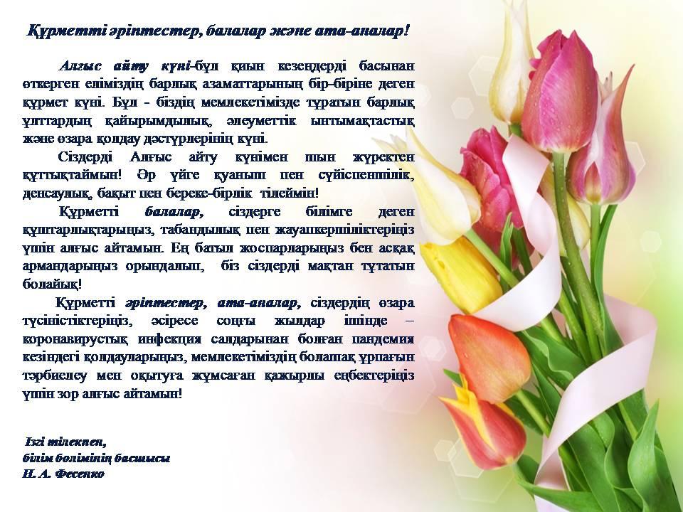 Білім бөлімінің басшысы Н.А. Фесенко құттықтауы! » Средняя общеобразовательная школа № 22