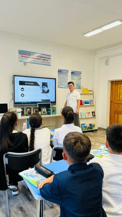 Түстен кейін Семей қаласы №22 мектеп-лицейінде ”Тілдер апталығы” аясында Ұлт ұстазы Ахмет Байтұрсынұлының”Төте жазу графикасы” тақырыбында офлайн лекция өткіздім.