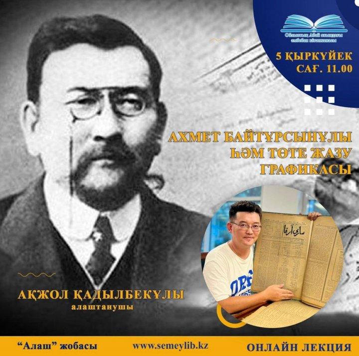 Ұлт ұстазының туған күніне орай облыстық Абай Атындағы Кітапханасында “Алаш” жобасы аясында “Ахмет Байтұрсынұлы һәм төте жазу графикасы” тақырыбында облыстағы кітапханашылар қауымына онлайн лекция оқыдым.