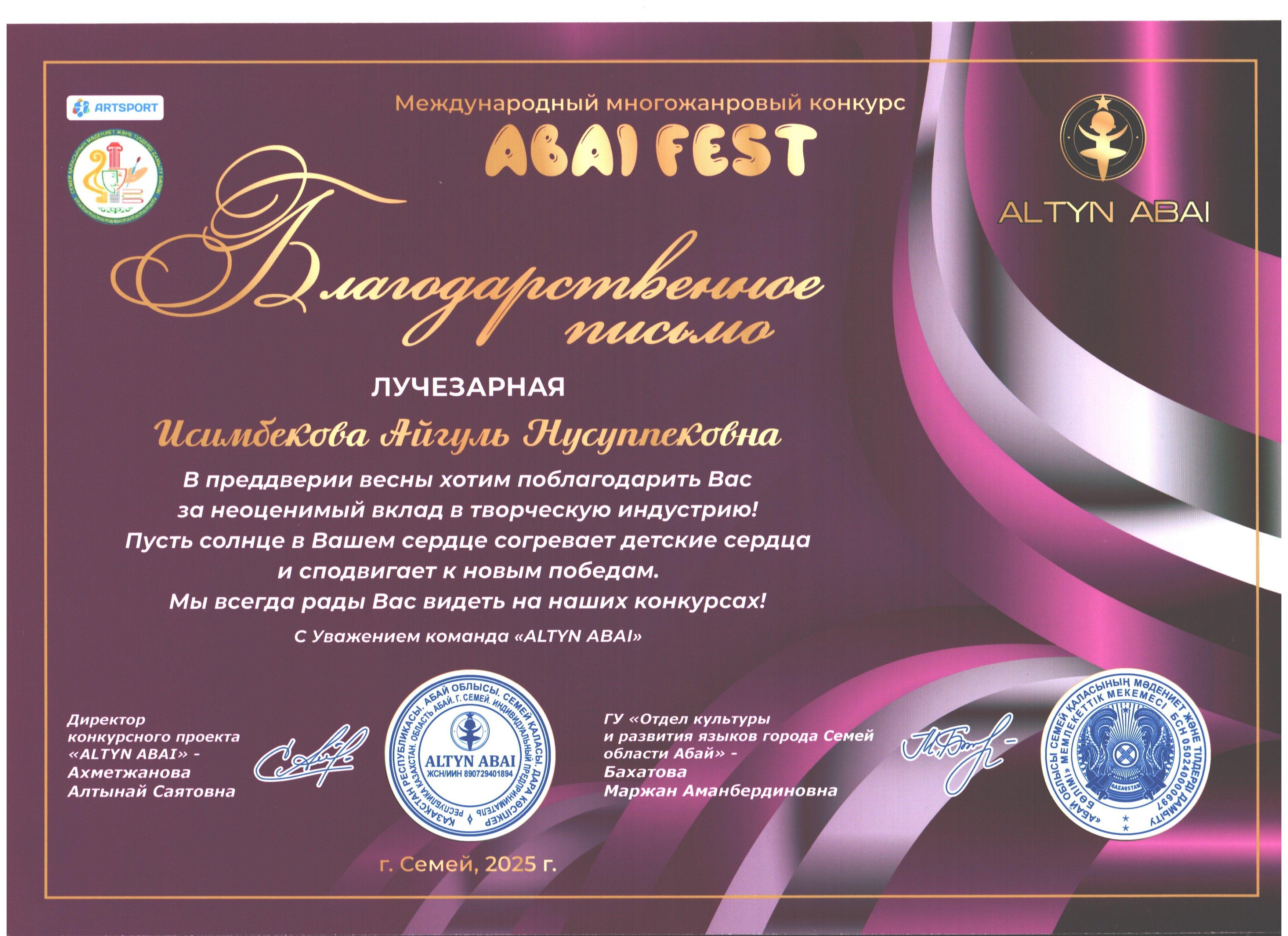 Алғыс хат » Средняя общеобразовательная школа № 22