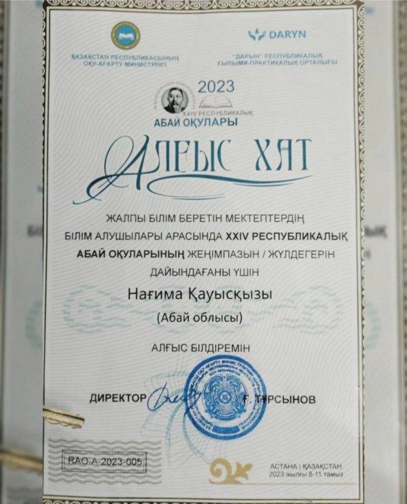 Нағима Қауысқызына АЛҒЫС ХАТ.