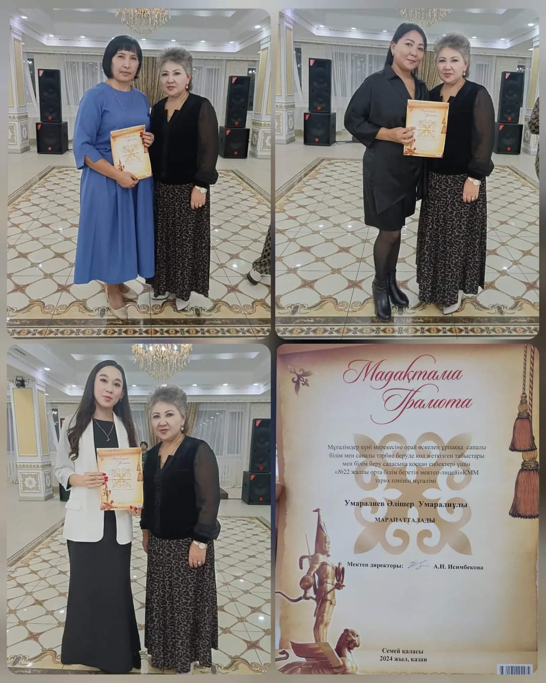 Преподаватели күні мерекесіне орай өскелең ұрпаққа сапалы білім мен саналы тәрбие беруде қол жеткізген табыстары мен білім беру саласына қосқан еңбектері үшін «№22 жалпы орта білім беретін мектеп-лицейі» КММ