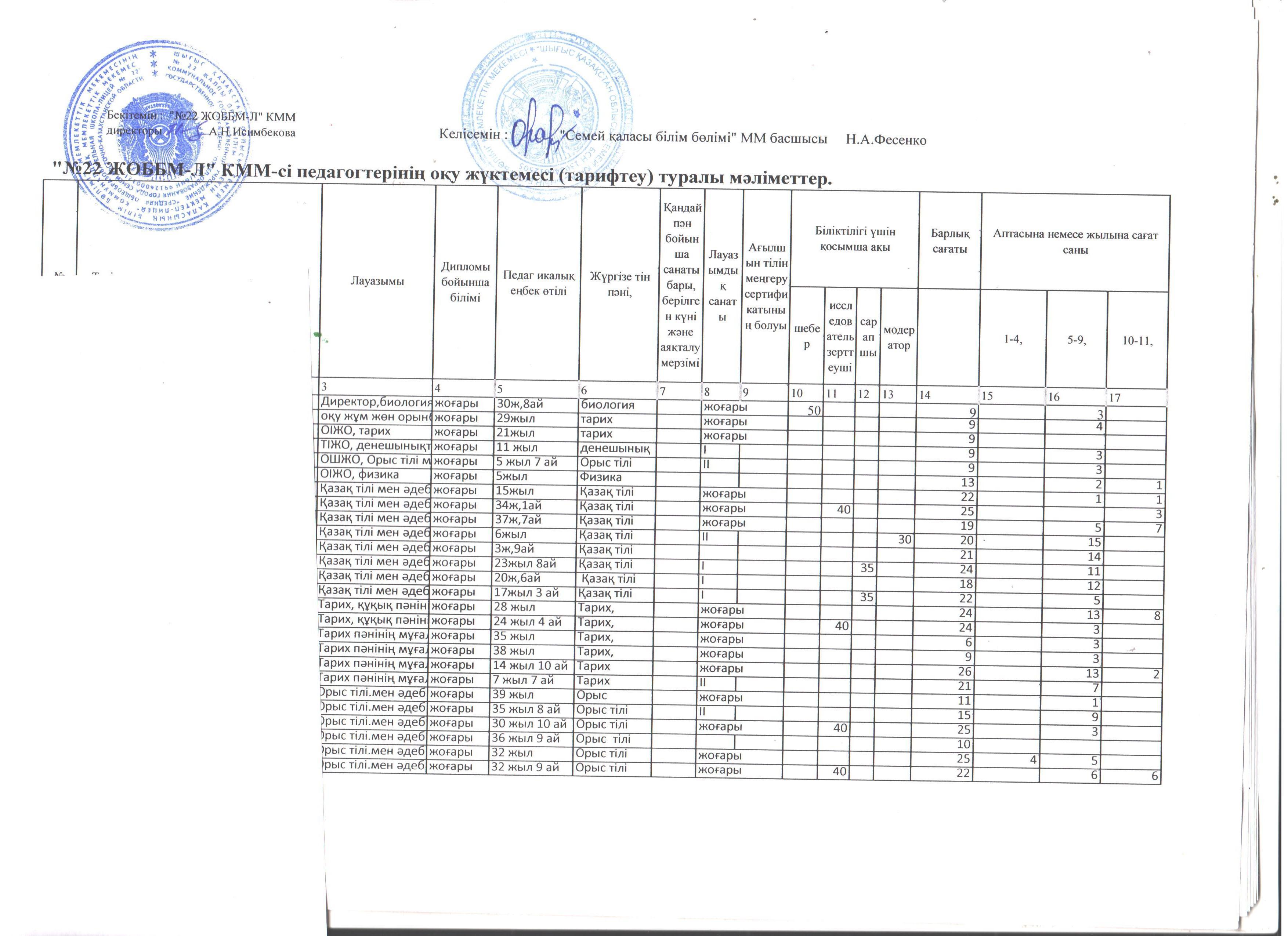 Преподавателидің жүктемесі » Средняя общеобразовательная школа № 22