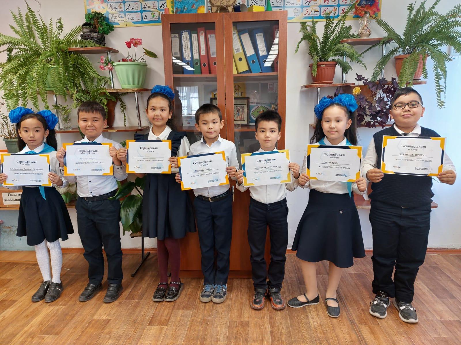 Қалалық "Zerek" математика, логика пәндері бойынша 3"А" сынып оқушыларын құттықтаймыз! Тұрысбек Шерхан 2 орын Мырзағалиева Еркенұр 2 орын Төлеужанов Алпамыс 2орын Ғалым Жібек 3 орын Маратбек Айсұлтан 3 орын Оразхан Ұлжан 3 орын Жақыпбек Мейірім 3 орын