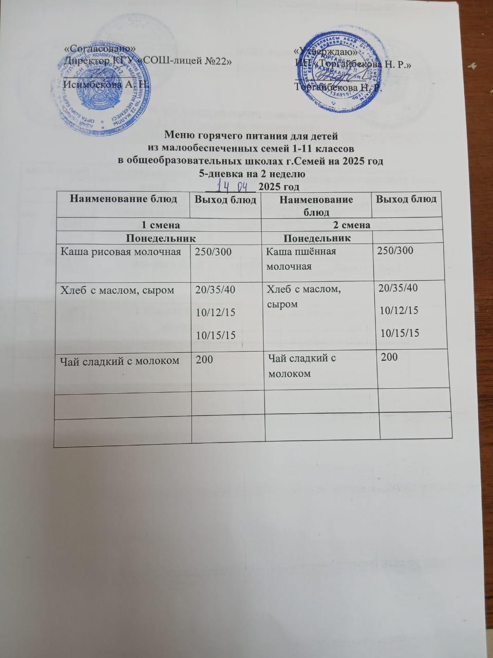 Күнделікті ас мәзірі/ 2 апта/ Дуйсенбі/ 1 ауысым жане 2 ауысым » Средняя общеобразовательная школа № 22