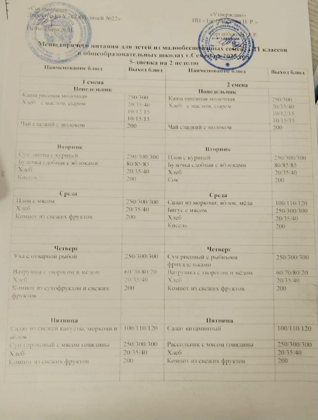 2025 жылдың 2 апталық мәзірі » Средняя общеобразовательная школа № 22