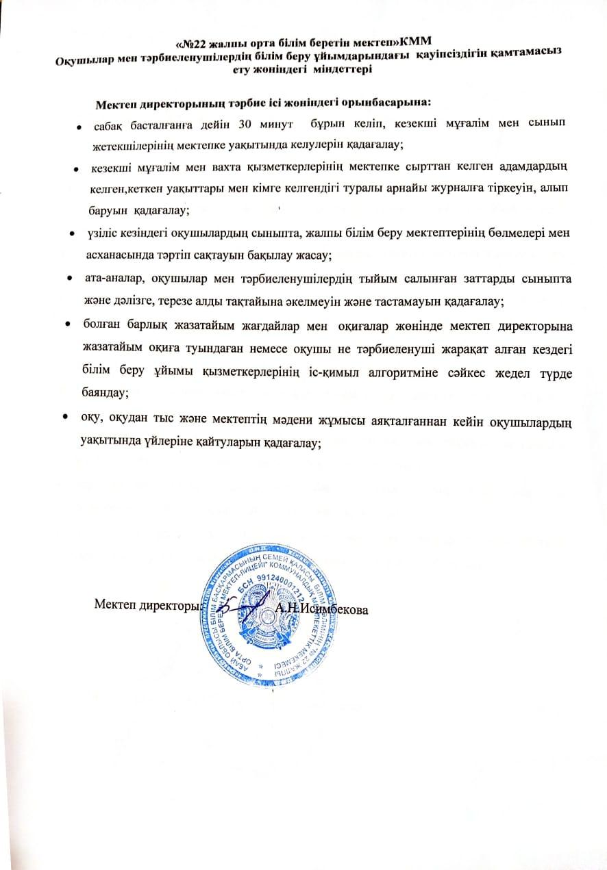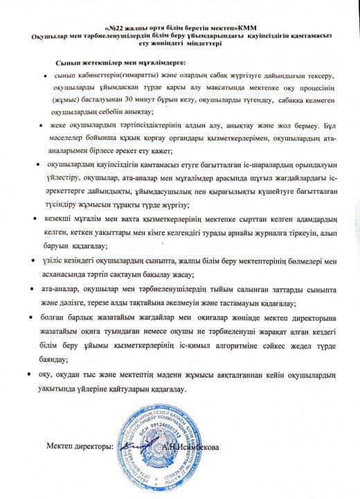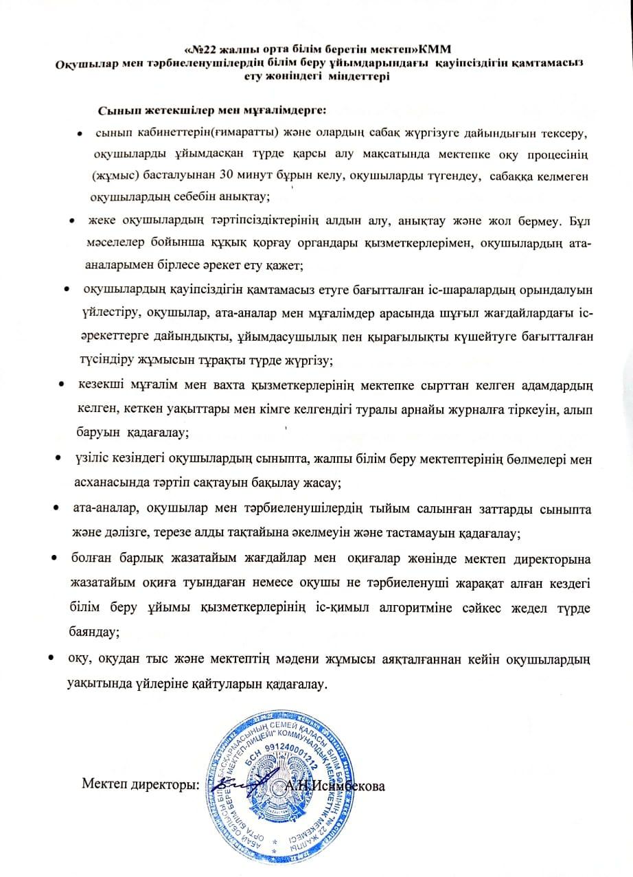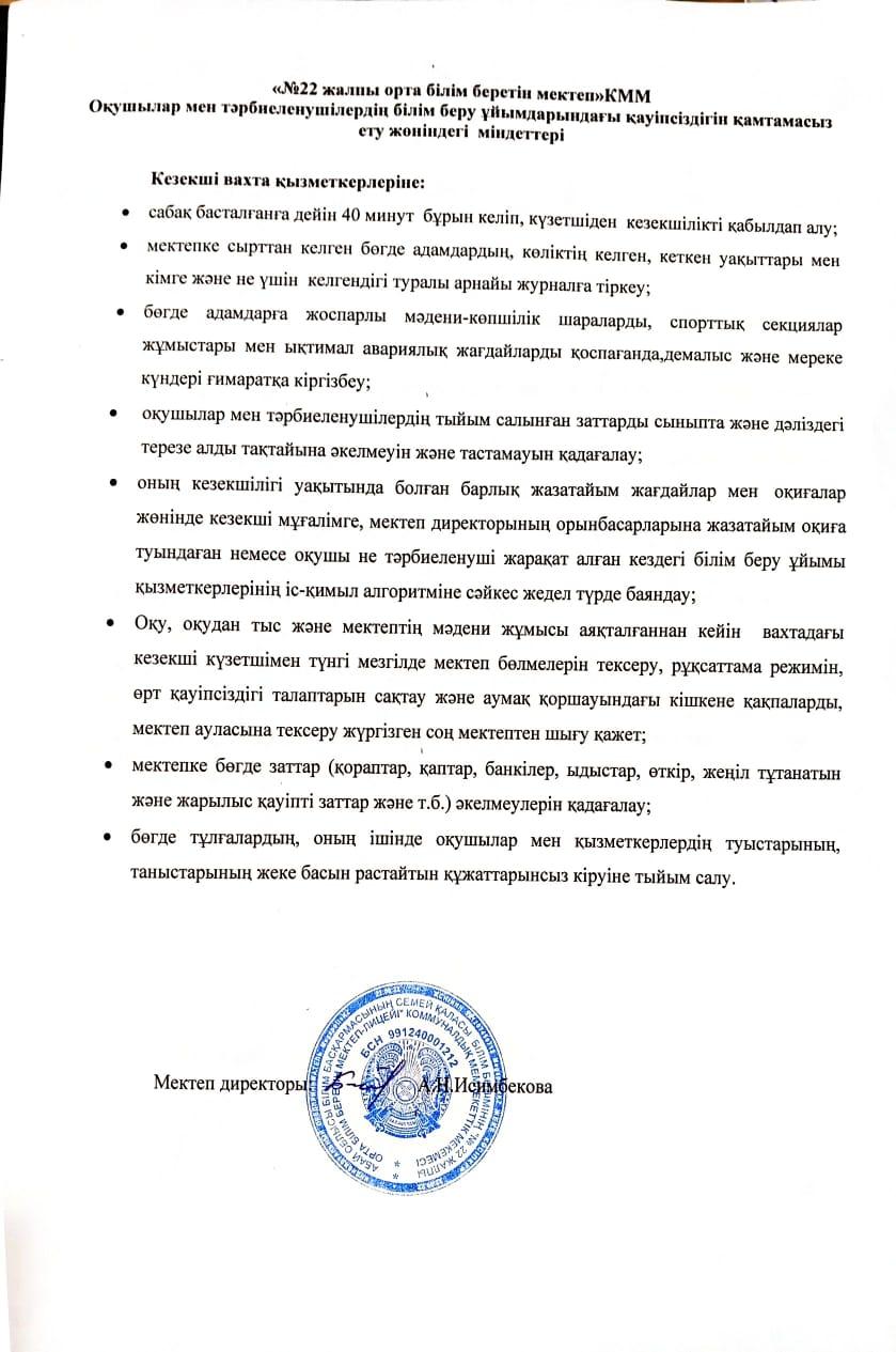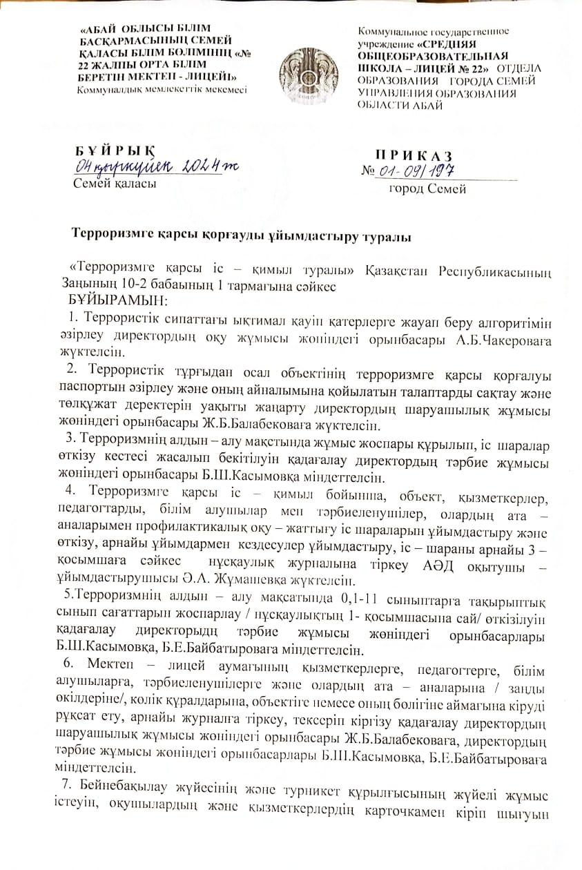Терроризмге қарсы қорғауды ұйымдастыру жұмыстары » Средняя общеобразовательная школа № 22