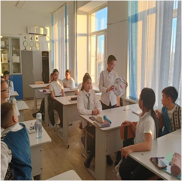 2024 жылдың   қараша айында  зорлық-зомбылықсыз 16 күн акциясы аясында  6- сынып оқушыларына «Дос боламыз бәріміз» тақырыбында психологиялық тренинг өткізілді.   Тренинг барысында оқушылармен сәлемдесіп, додокэдр әдісі арқылы тақырып бойынша сұрақтар қойылып талқыланды. «Досым, қалың қалай?», «Мен досым үшін не істеймін?», «Қаламсап» атты жаттығулар  орындатылды. Тренинг соңында оқушылар өз ойларын айтып, қорытындылады.