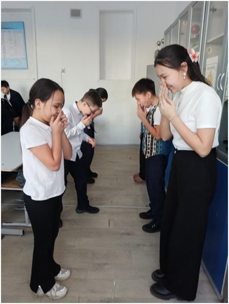 Мақсаты: Оқушылардың арасында жағымды қарым-қатынас орнату, бір-бірін сыйлауға, адал дос болуға және қоршаған ортамен дос болуға үйрету, коммуникативті өрісті дамыту.
