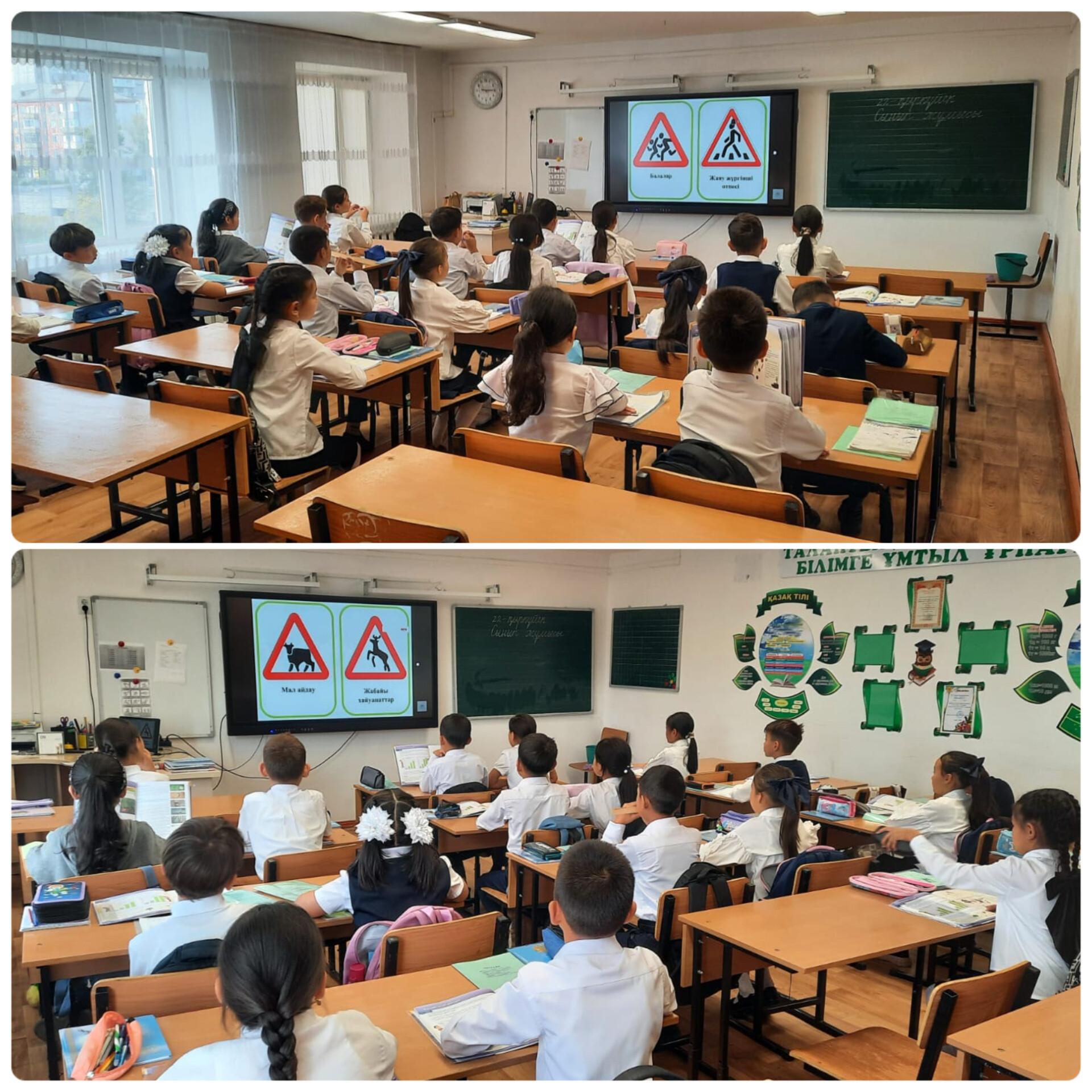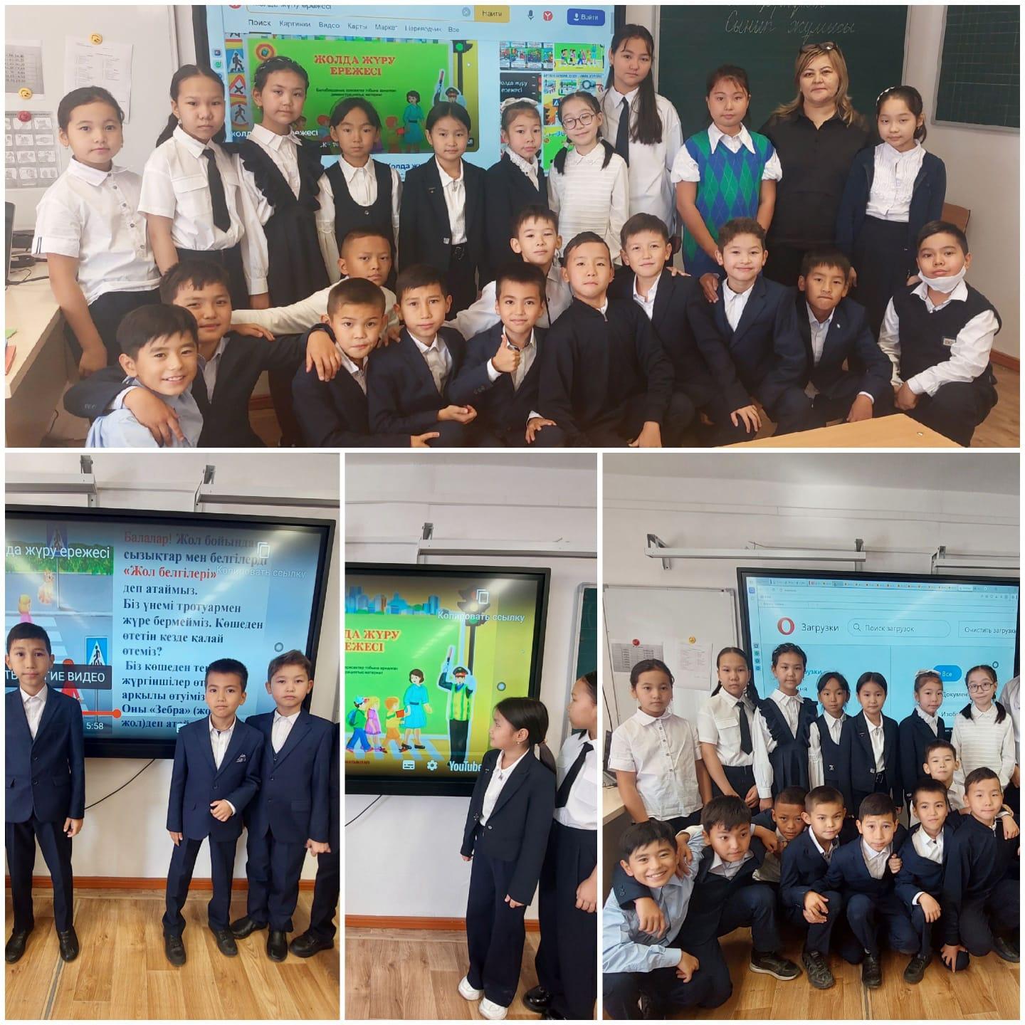 "Абайлайық балалар" акциясы аясында бастауыш сынып оқушыларда жолда жүру ережесі бойынша бірінғай сынып сағаты өтті