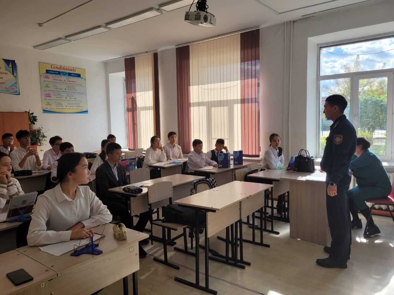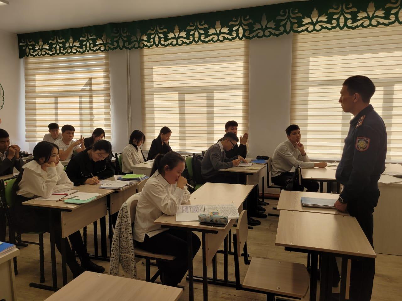 16.10.2023 жылы Абай облысы Семей қалалық Әуезов ПБ ЖПҚБ ЮПБ инспекторы полиция аға лейтеннанты А.А.Сагадатов "№22 жалпы орта білім беретін мектеп-лицейі" КММ-нің 9,10, 11 сынып оқушыларына "Әкімшілік құқықтық бұзушылық кодексі" тақырыбында түсіндірме жұмыстары жүргізілді.