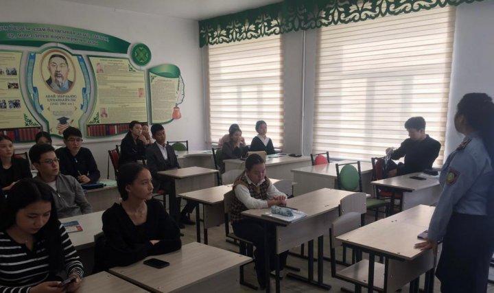 24.10.2023 жылы “22 орта білім беретін мектеп- лицейінің 9-11 сынып оқушылар арасында Әуезов ПБ ЖПҚБ УПИ ЮПТ полиция аға лейтенанты А.Н.Досымханова “Қазақстан Республикасының бейбіт жиналыстарды ұйымдастыру және өткізу” туралы профилактикалық әңгіме жұмыстарын жүргізді.