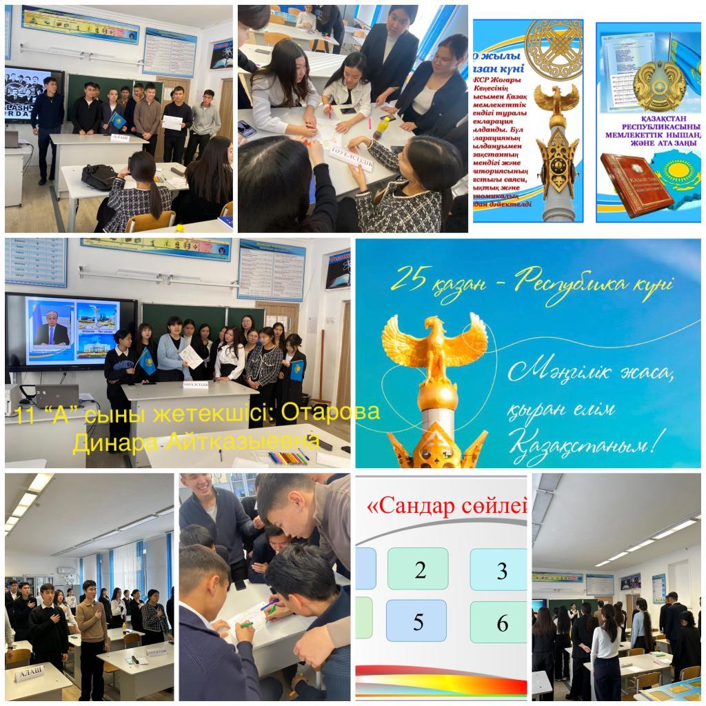 24 октябрь 2023 0 1 2 3 4 5 25 қазан Республика күніне орай 8-11 сынып оқушылары арасында "Мәңгілік жаса, қыран елім" тақырыбында тәрбие сағаты өтті.