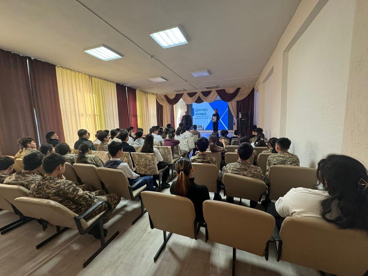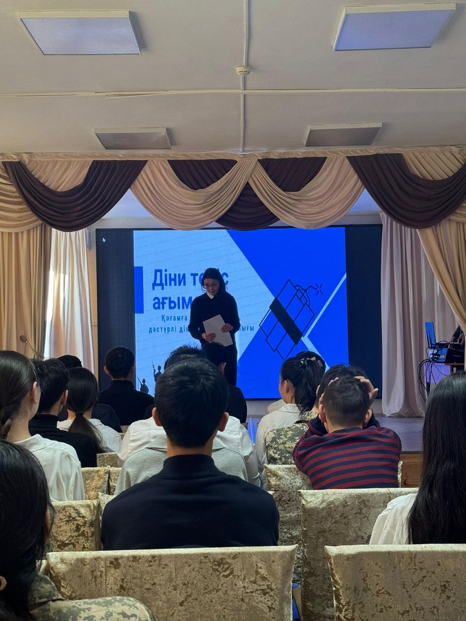 22 қаңтар күні 9-10 сыныптарға Ішкі саясат бөлімінен ақпараттық түсіндірме тобының мүшесі А.М.Кусембекова “Діни теріс ағымдар. Қоғамға тигізетін әсері , дәстүрлі діннен айырмашылығы” тақырыбында ақпараттық түсіндірме жұмыстарын жүргізді. Кездесу форматы лекция түрінде ұйымдастырылды. Оқушылар діни деструктивтілік элементтері бар тұлғаны анықтау бойынша сұрақ -жауап алмасты.