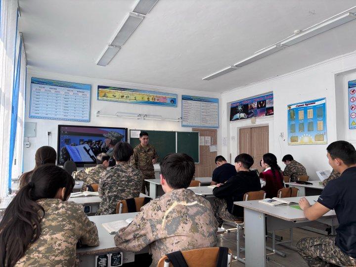 2025 жылдың 04 наурыз күні АӘД пәнінің мұғалімі Жұмашев Ә.А. "Біртұтас тәрбие" бағдарламасы аясында "Менің бауырым" жобасы аясында 10-11 сынып оқушыларымен «Мерзімді әскери қызметке шақыру мәселелері туралы» әңгіме жұмыстарын жүргізді.